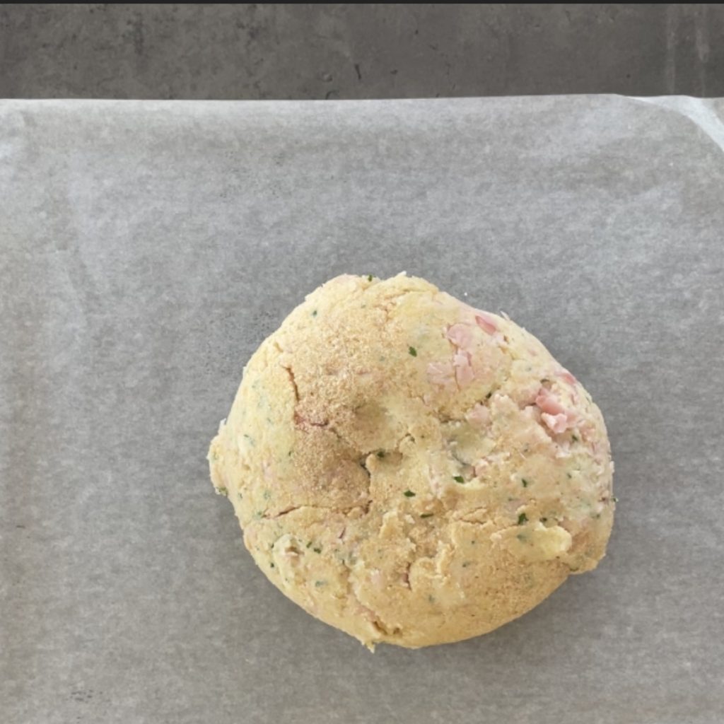 • Adicione a ricota e o presunto picado, misture bem e adicione a farinha de rosca, misture com as mãos até obter uma mistura homogênea.