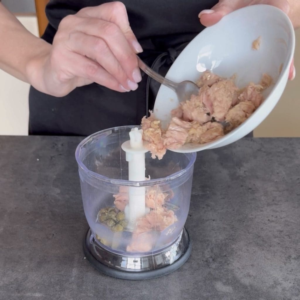 • Vamos começar a preparar a Salada caipira, cozinhe as batatas como estiver acostumado a fazer, eu as cozinho no vapor na panela de pressão, descasco, corto em pedaços e coloco no cesto, cozinho por 20 minutos a partir do momento em que a panela começa a apitar. Uma vez que as batatas estão prontas, descasque se as tiver cozido com a casca, corte em pedaços e coloque em uma tigela. Prepare o molho tártaro, coloque no copo do liquidificador as alcaparras,