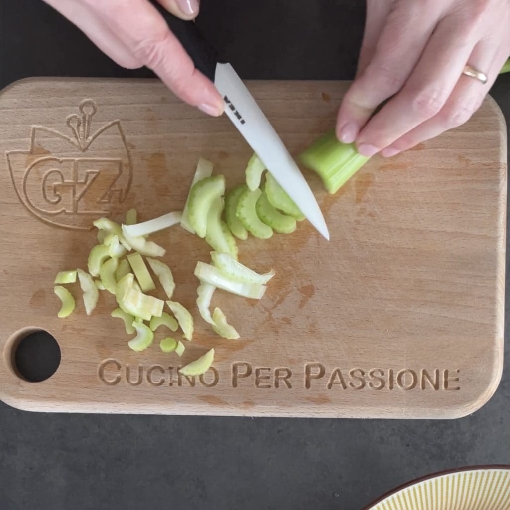 Quando o peito de frango estiver cozido, deixe esfriar e depois corte em pedaços, tentando também desfiá-lo,