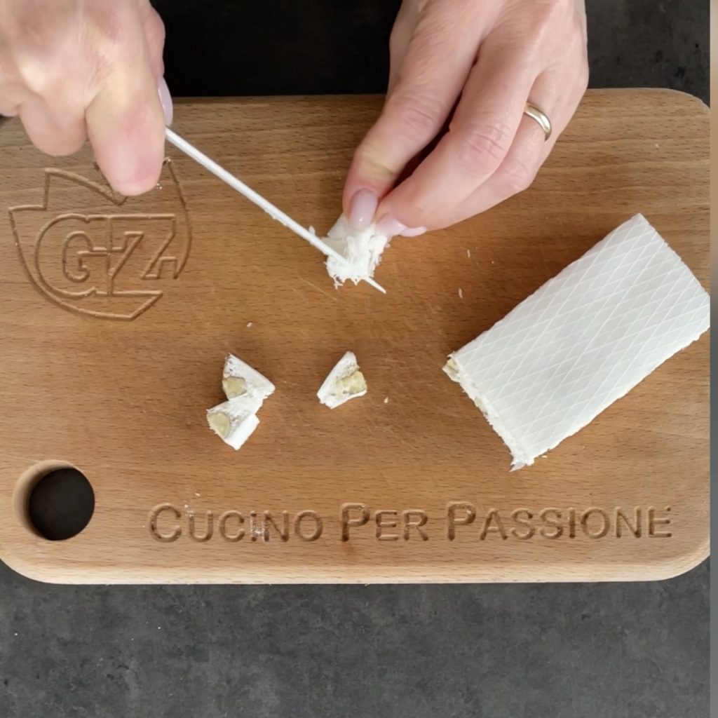 Corte o torrone em pequenos pedaços