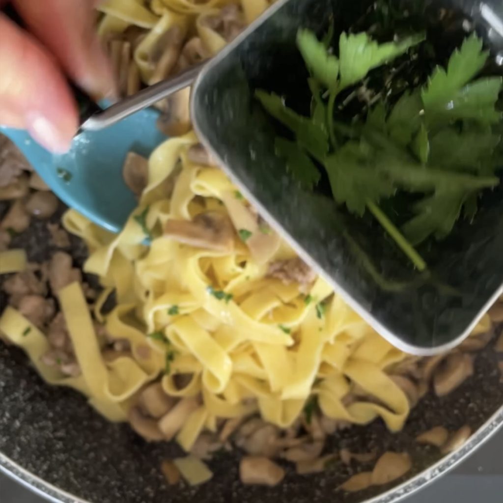 Quando o tagliatelle estiver pronto, adicione salsa picada
