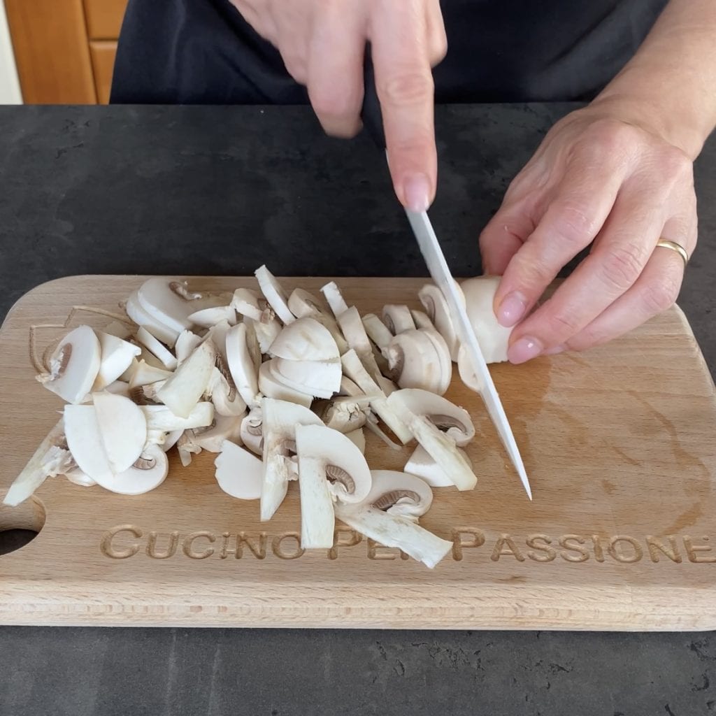 Corte os cogumelos em fatias ou pedaços como preferir,