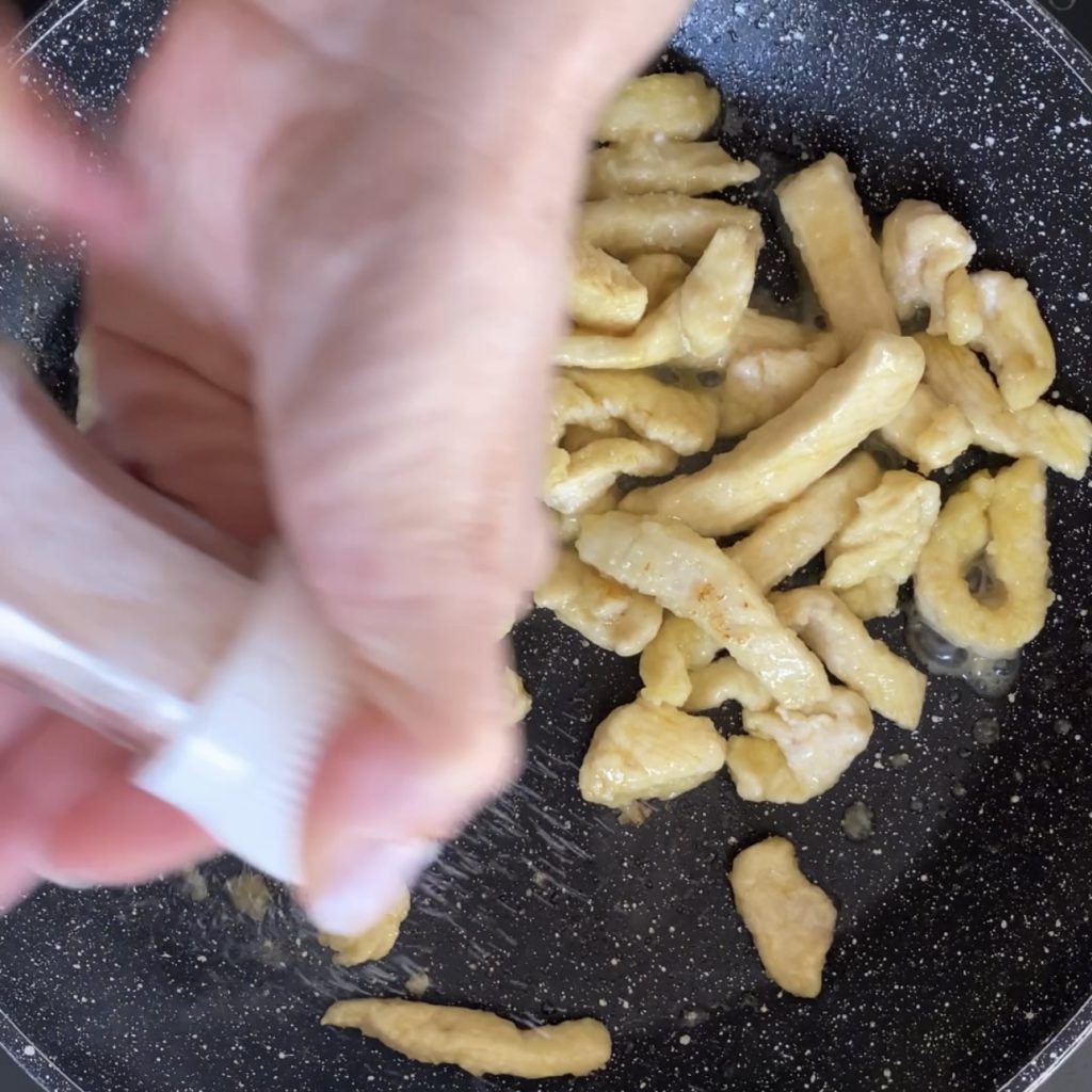 Quando o óleo estiver bem quente, adicione as tiras previamente enfarinhadas e doure-as bem,
