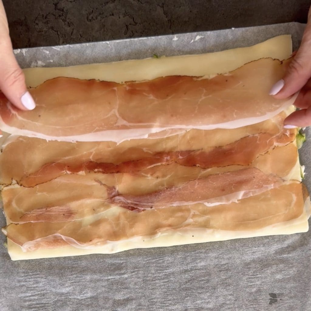Cubra com fatias de speck,