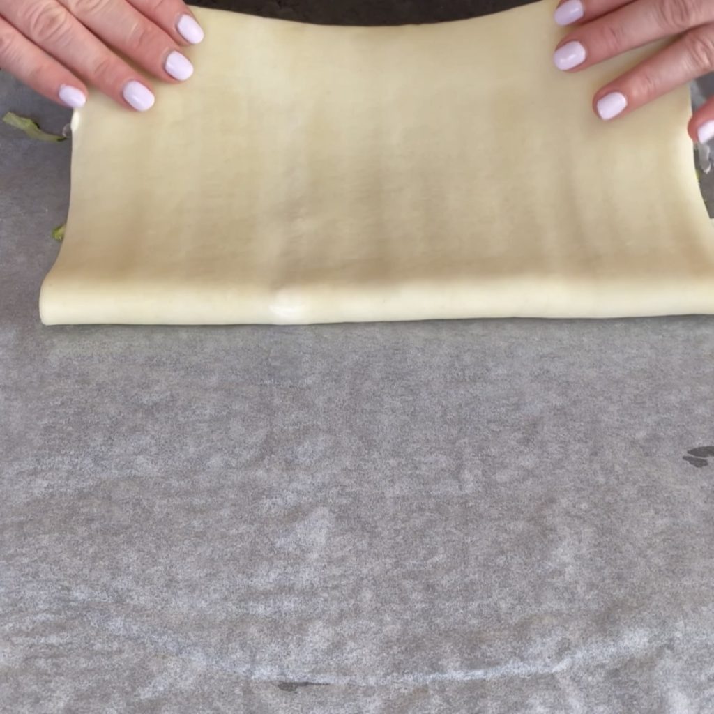 dobrar a massa folhada e pressionar bem para aderir.