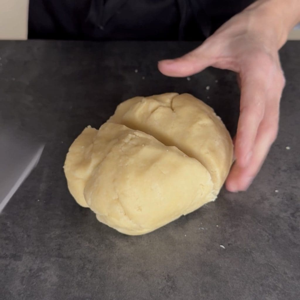 • Transfira a massa para uma superfície e trabalhe bem, depois divida em duas partes.