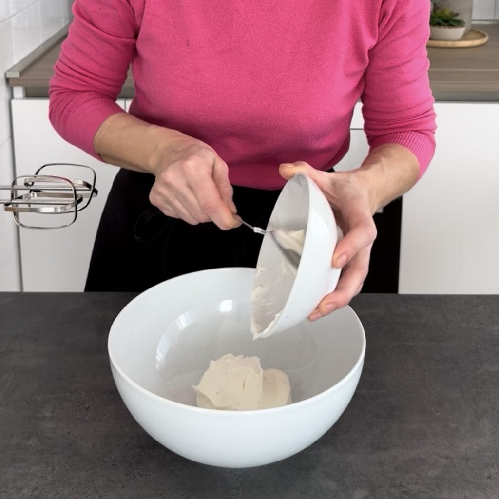 Despeje em uma tigela o mascarpone,