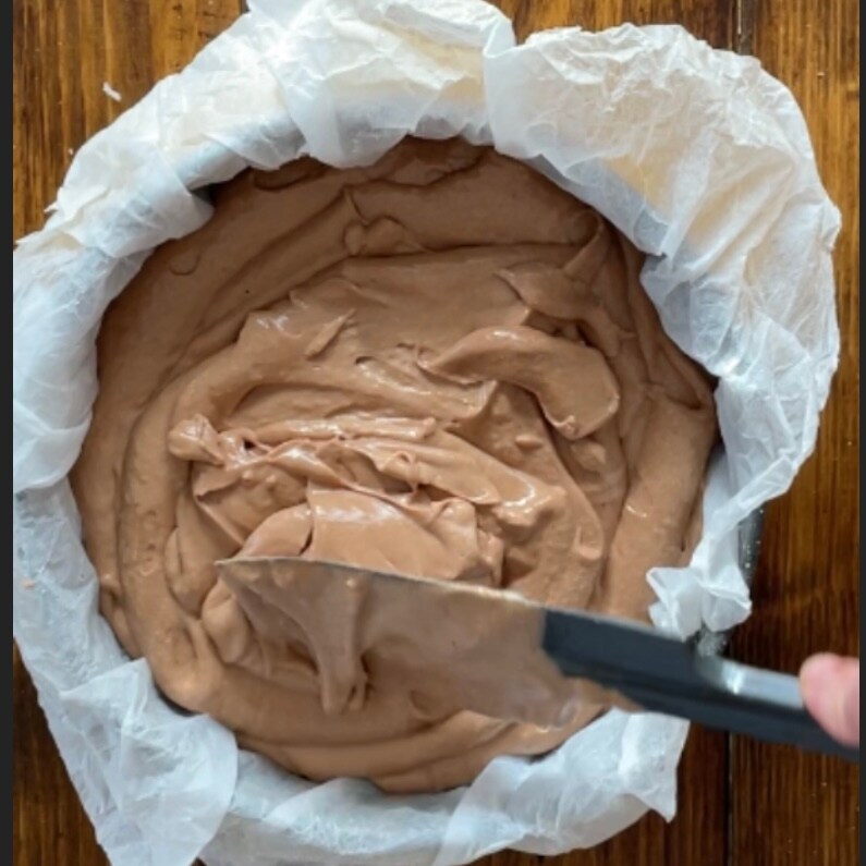 Adicione as claras batidas em neve e incorpore-as com uma espátula, com movimentos de cima para baixo, para evitar que a massa desmonte. Ligue o forno estático a 180°C e forre a forma com papel manteiga embebido em água e depois bem espremido.