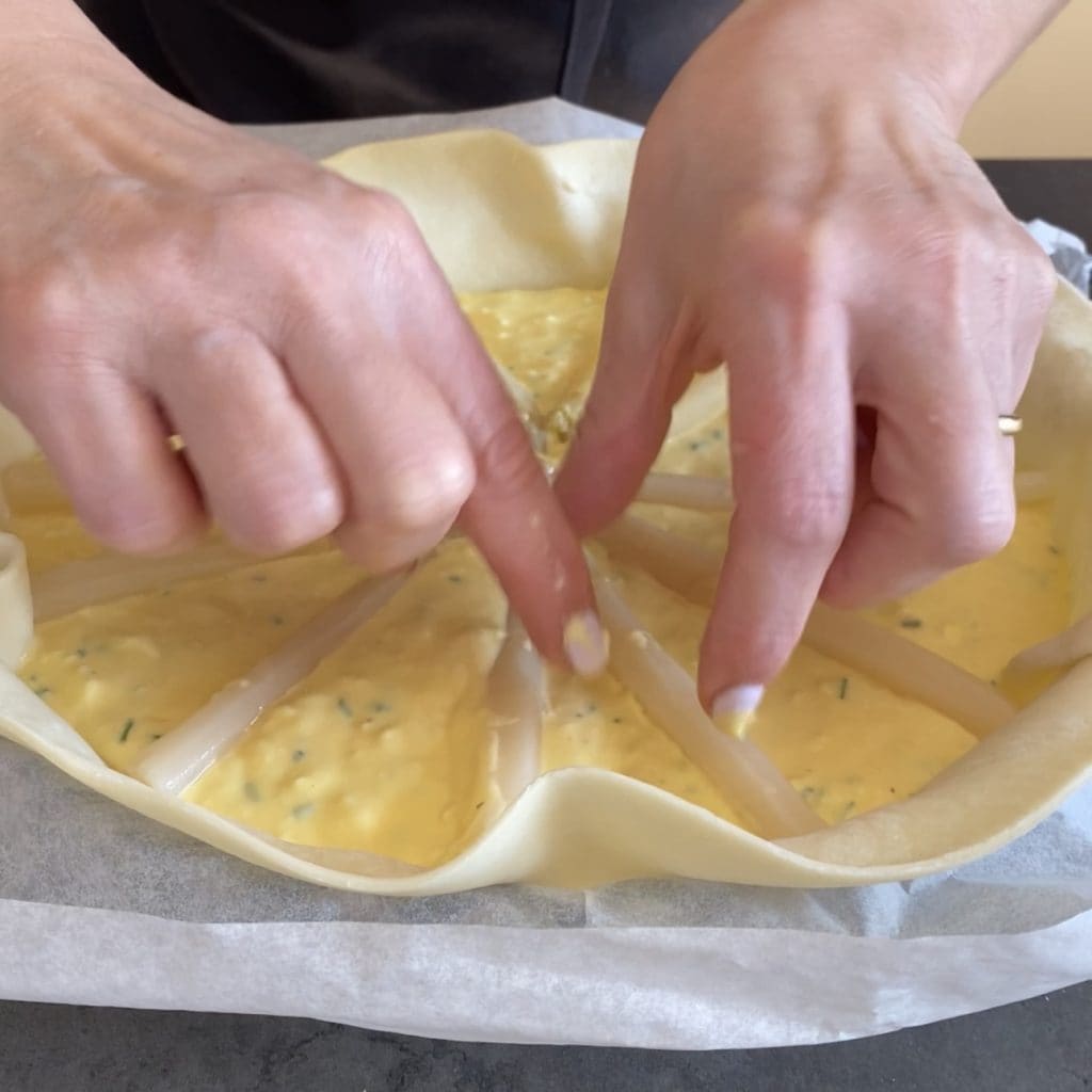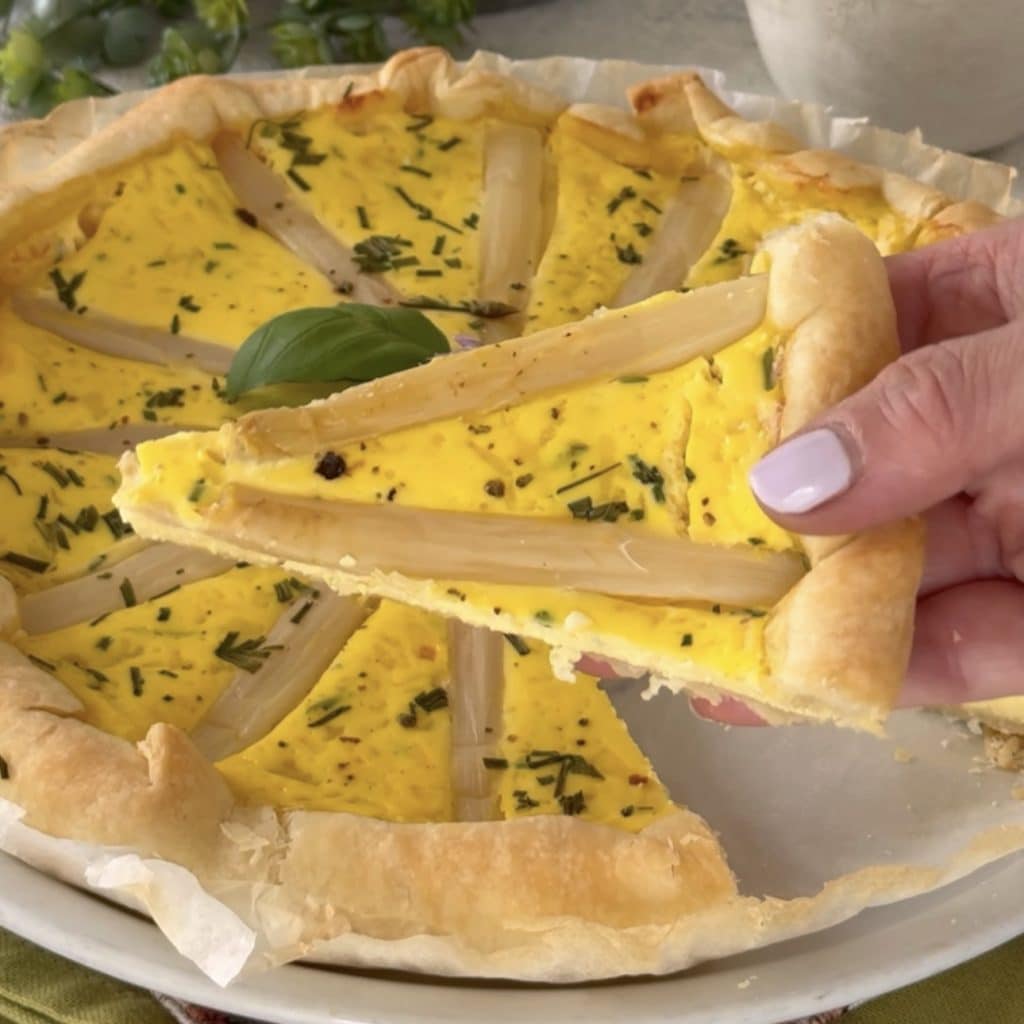 Torta salgada aspargos e ovos eu adoro as tortas salgadas e sempre procuro fazer novas com os vegetais da estação que tenho à disposição. Uma das melhores tortas salgadas e minha favorita é esta torta salgada com aspargos, adoro aspargos e acho que essa combinação é certa, já que os aspargos muitas vezes são servidos com ovos, por exemplo, na região do Vêneto são acompanhados por ovos cozidos (esta é a receita ovos e aspargos à veneziana ) em outras partes da Itália, entretanto, os aspargos são servidos com ovos mexidos ou fritos. Esta torta salgada de aspargos com ricota e ovos é muito simples de fazer, são necessários apenas alguns ingredientes, você pode servi-la como prato único ou como entrada, ou em um buffet, durante suas festas ou para levar em seus piqueniques ou viagens. A torta de aspargos com massa folhada e ricota você pode preparar tanto com aspargos brancos como eu fiz quanto com aspargos verdes, se não for época de aspargos você pode usar também aspargos congelados ou em conserva. Se quiser decorar a torta salgada, pode usar também um ovo cozido e adicioná-lo em fatias pequenas. Para a cocção da omelete no forno simples, usei uma forma de vidro para torta de 27 cm (como esta AQUI) obviamente você também pode usar uma forma retangular. Recomendo que você veja também outras RECEITAS COM ASPARGOS você certamente encontrará outras ideias saborosas para experimentar. Agora vamos ver como fazer a torta salgada com aspargos e se você tentar me avise. Barbara