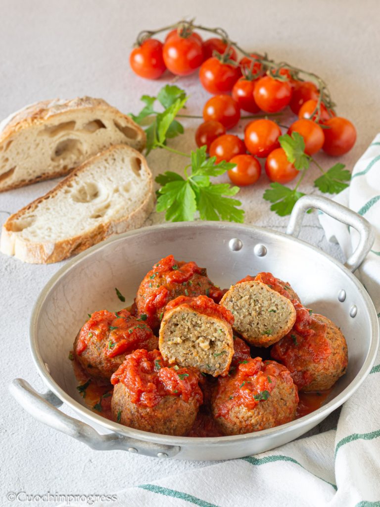 Feitas com cogumelos champignon picados, pão ralado, parmesão e ervas, essas almôndegas conquistam pelo cheiro rústico e pela consistência delicada. Depois de modeladas, são fritas e depois mergulhadas num molho de tomate caseiro, onde cozinham lentamente, absorvendo todo o sabor do molho.