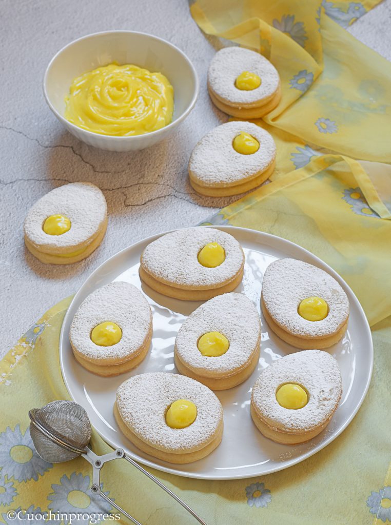Segundo a tradição, o ovo é um símbolo pascal: a aparência externa, semelhante a uma pedra, faz com que pareça inanimado, como um túmulo fechado por uma pedra, mas em seu interior contém vida, que se torna imagem da ressurreição. Nesses docinhos tudo isso é evocado com grande simplicidade: dois biscoitos de massa quebradiça envolvem um delicado creme de confeiteiro, que aparece pela abertura no biscoito superior. Fazer esses biscoitos é, portanto, muito simples e requer apenas um cortador em forma oval, que pode ser substituído por moldes de papel manteiga feitos em casa.