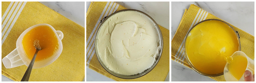 A característica desta sobremesa está na base crocante de biscoito, no recheio macio de queijos, aromatizado com raspas e suco de laranja e, sobretudo, na gelatina de laranja que a cobre por completo, conferindo um sabor cítrico marcante e a linda (e natural!) cor laranja brilhante. O jogo das diferentes texturas, além do sabor realmente encantador, faz deste cheesecake um dos melhores que já preparei. Experimentem e me contem!