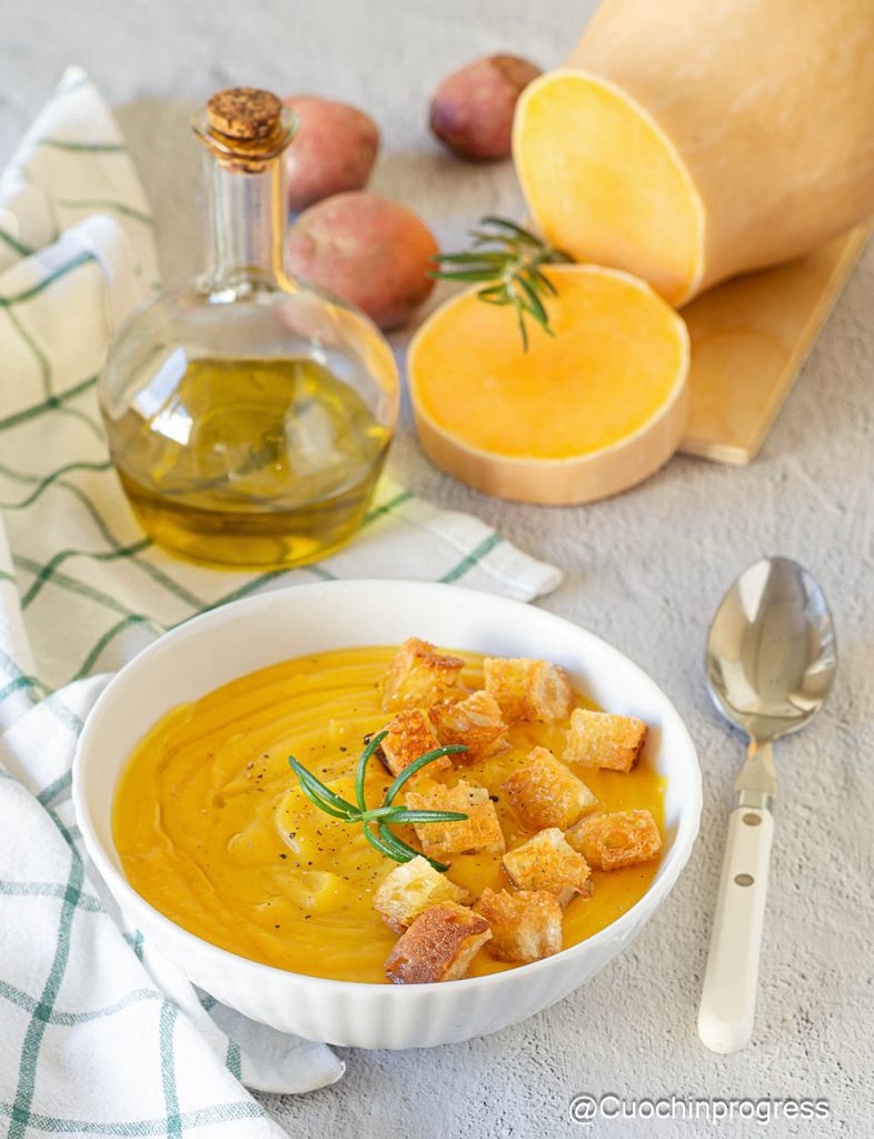 O CREME DE ABÓBORA E BATATA é um comfort food genuíno e aconchegante, ideal para os dias mais frios. Macio, cremoso e de cor dourada, este creme une a doçura natural da abóbora à textura aveludada das batatas, criando um prato simples mas de sabor rico e reconfortante.
