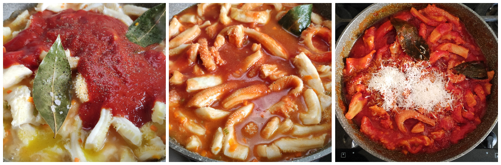 Mexa e sirva a dobradinha à ciociara com mais pecorino ralado.