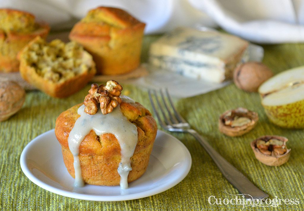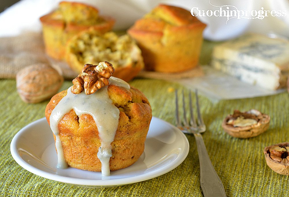 MUFFINS DE GORGONZOLA, PÊRA E NOZES são uma ideia deliciosa, simples e rápida para uma entrada, um lanche ou um aperitivo diferente do habitual. A combinação do sabor marcante do gorgonzola, a delicadeza da pêra e a crocância das nozes os torna muito saborosos. A única contraindicação é que, depois da primeira mordida, tentar parar e não devorá-los até a exaustão vira uma verdadeira missão.