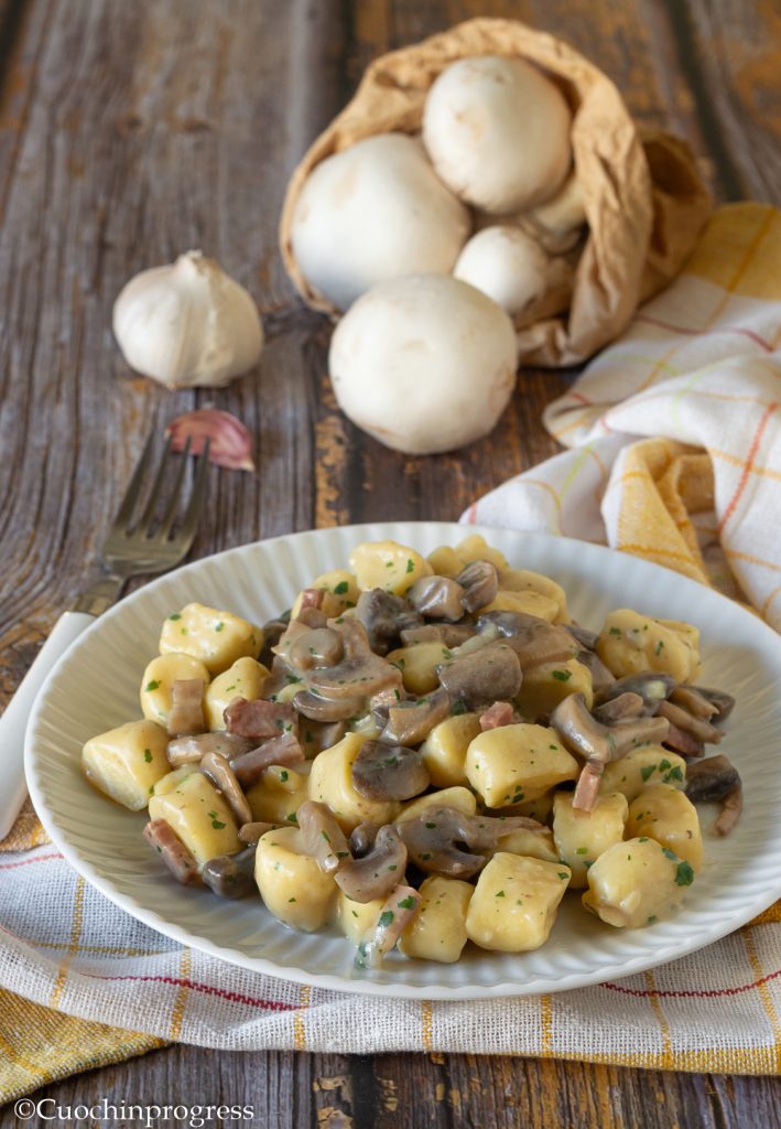 O NHOQUE DE RICOTA COM COGUMELOS E SPECK é um prato principal fácil, feito com ingredientes simples, pronto em apenas 20 minutos e com um sabor excepcional. Pode ser preparado para almoços e jantares informais, mas também para uma ocasião especial, dado o equilíbrio e a delícia da receita.