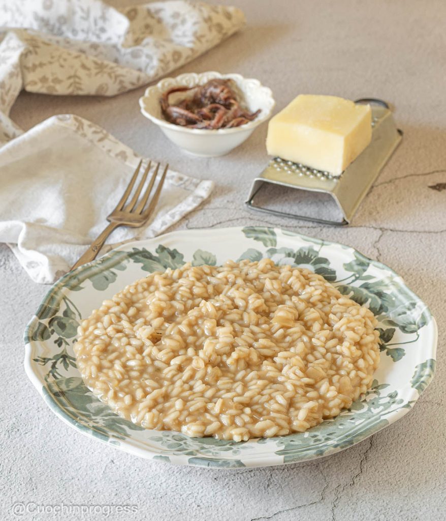 O RISOTO À CAPPUCCINA é um prato que une intensidade e delicadeza, brincando com contrastes perfeitamente equilibrados: a salinidade profunda das anchovas, a doçura aromática do Marsala e a cremosidade marcante do pecorino se fundem em um risoto de caráter refinado e original.