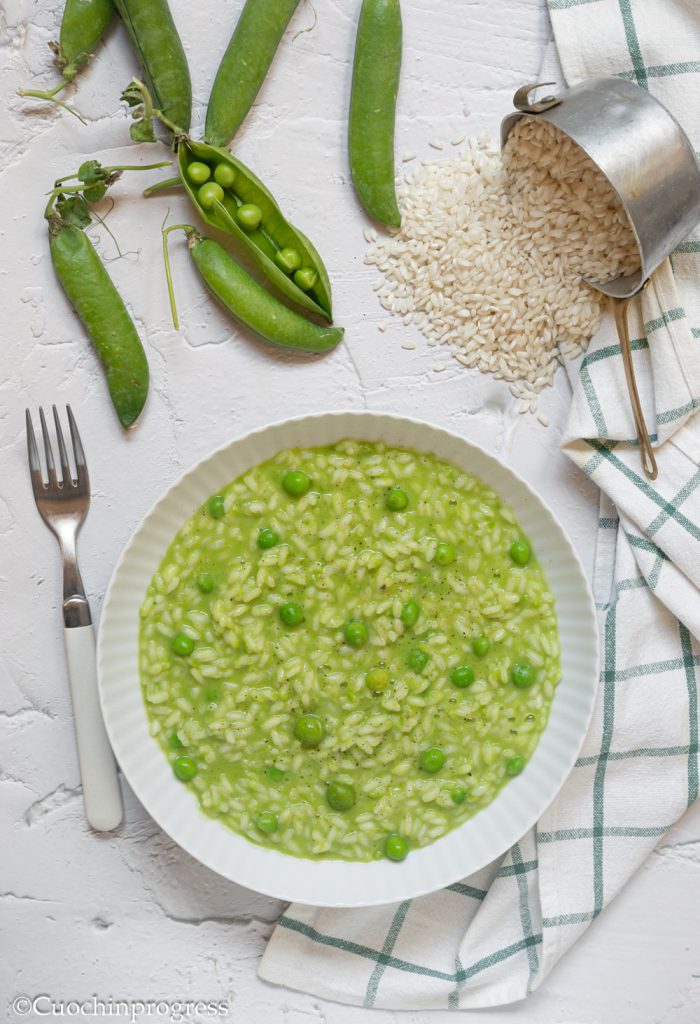 O RISOTO DE ERVILHAS é um primeiro prato leve e delicado, perfeito para começar um bom almoço de primavera, quando as ervilhas estão mais doces e saborosas e dá vontade de saborear as primícias da horta. É um prato simples, como você verá, mas bem equilibrado e completo que, com pequenos cuidados que eu apresento aqui, pode ficar especial e requintado.