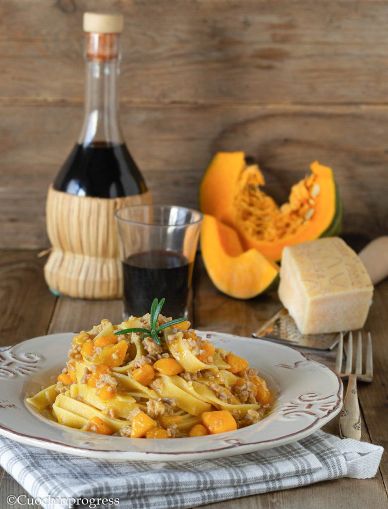 Tagliatelle com abóbora e linguiça