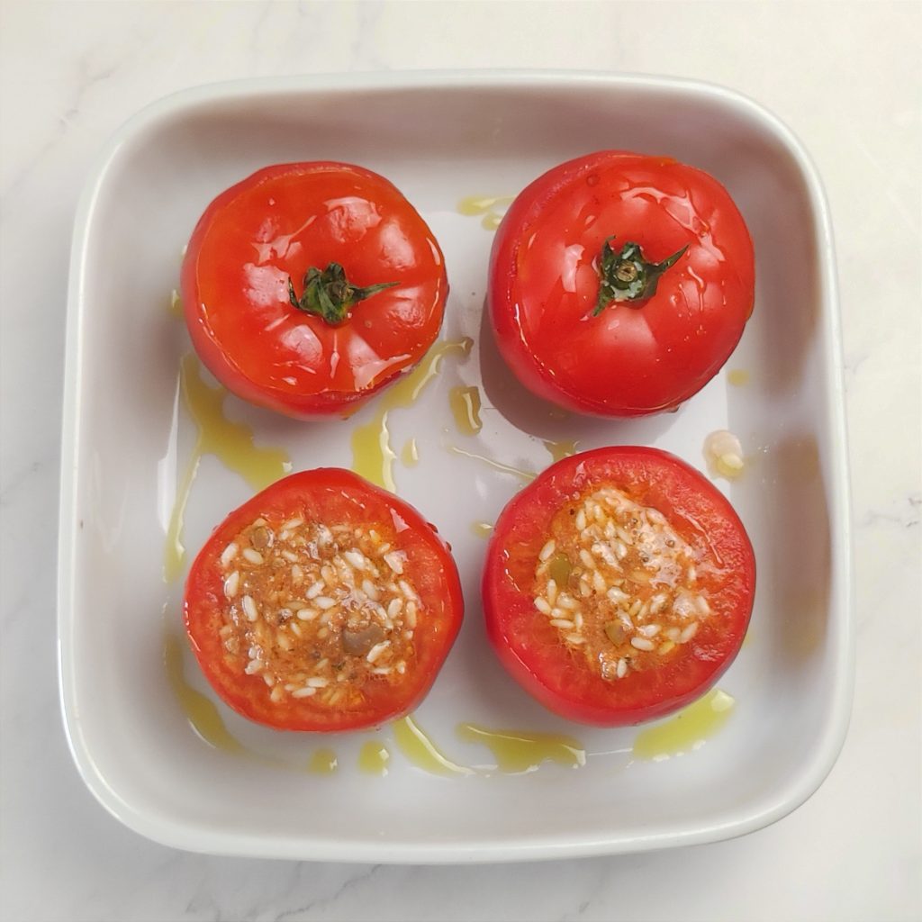 A delícia deste prato está toda na sua frescura e harmonia: o tomate que contém o recheio fica assado, mas ainda carnudo e levemente ácido, enquanto o arroz, temperado com o atum e as azeitonas, traz a parte mais substancial e salgada da receita. Um bom fio de azeite de oliva extravirgem, naturalmente, completa a preparação que, como você vê, reúne grande parte dos ingredientes da cozinha mediterrânea.