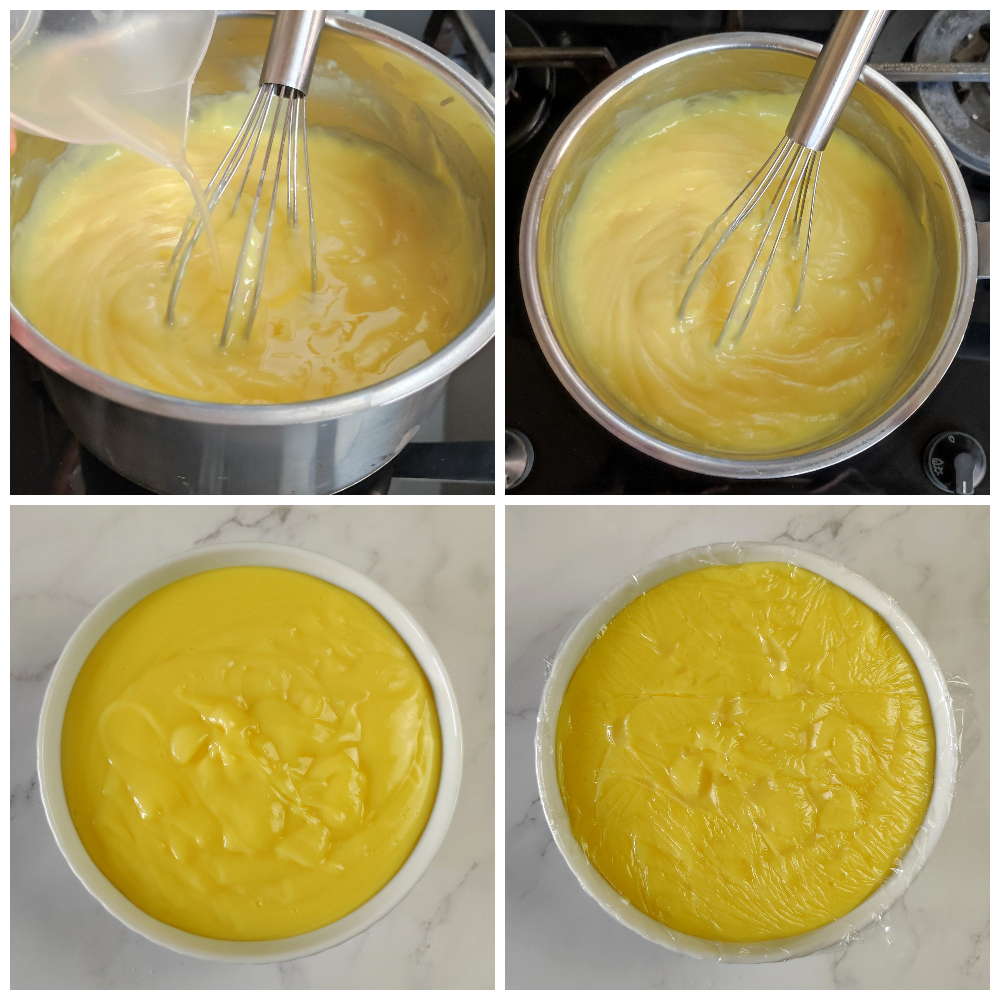 Depois de pronto, coloque em uma tigela, cubra em contato com filme plástico para evitar a formação daquela crostinha na superfície e deixe esfriar completamente.