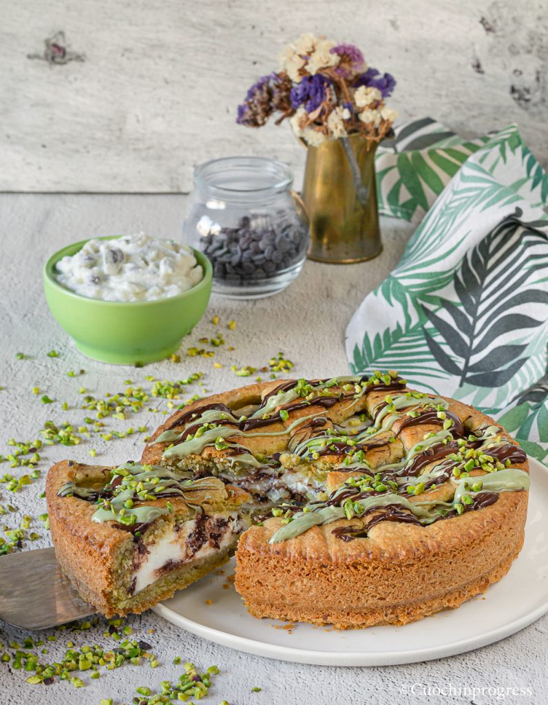 A TORTA DE PISTACHE COM RICOTA E CHOCOLATE é uma sobremesa siciliana super gostosa, rica mas muito simples de preparar, que pode ser servida como sobremesa ao final da refeição, como bolo de aniversário ou em qualquer ocasião que peça algo realmente especial. É, de fato, um bolo bonito e delicioso, na melhor tradição da ilha.