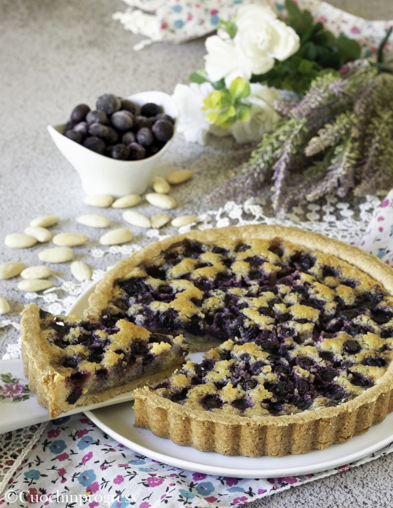 A TORTA FRANGIPANE COM MIRtilos é uma sobremesa elegante e deliciosa, caracterizada por uma base de massa podre crocante, uma camada de creme frangipane macio e perfumado, e uma cobertura de mirtilos que proporciona um contraste perfeito entre doçura e acidez.