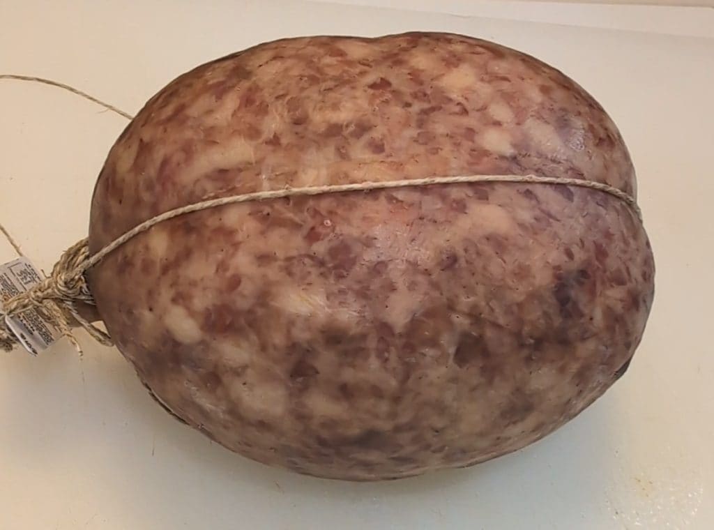 Este embutido, semelhante ao cotechino mas maior e curado, deve seu nome ao invólucro em que é tradicionalmente embalado: a bexiga do porco, a “boccia”.