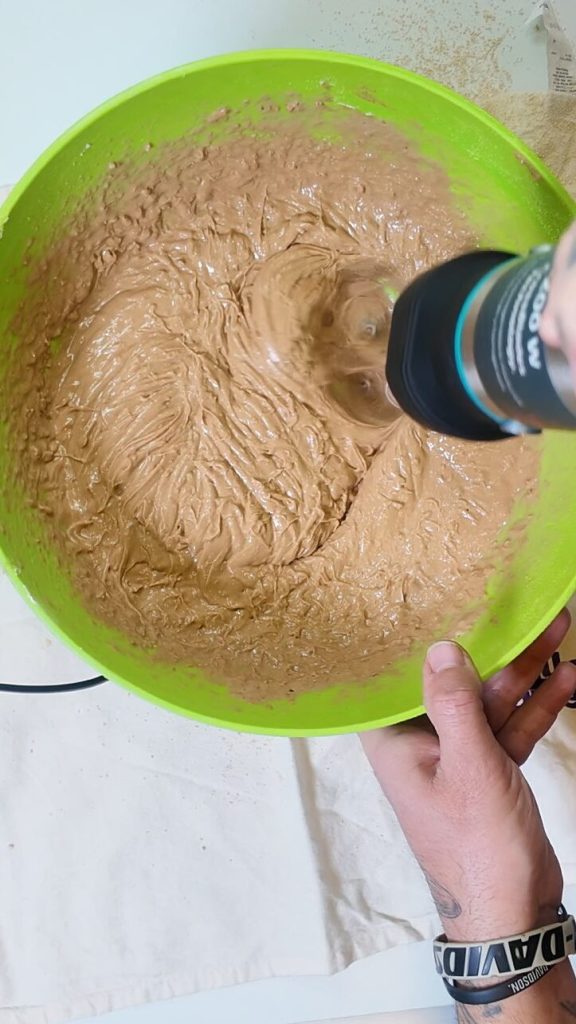 O uso do mixer de imersão, como mostrado no meu procedimento, garante uma massa lisa e macia.