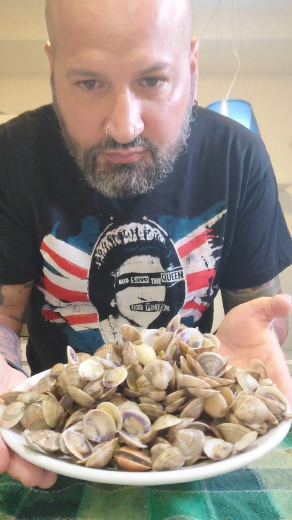 Lave bem os vôngole em água corrente, escorra-os e despeje-os na frigideira.