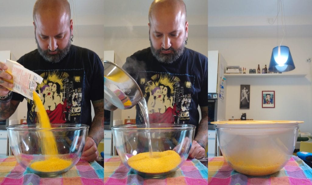 Cubra a tigela e deixe descansar o tempo necessário para que o cuscuz absorva o líquido e inche.