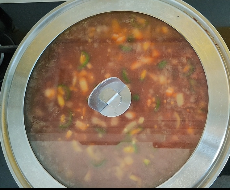 Mexo de vez em quando para saborizar bem tudo e cozinho com a tampa.