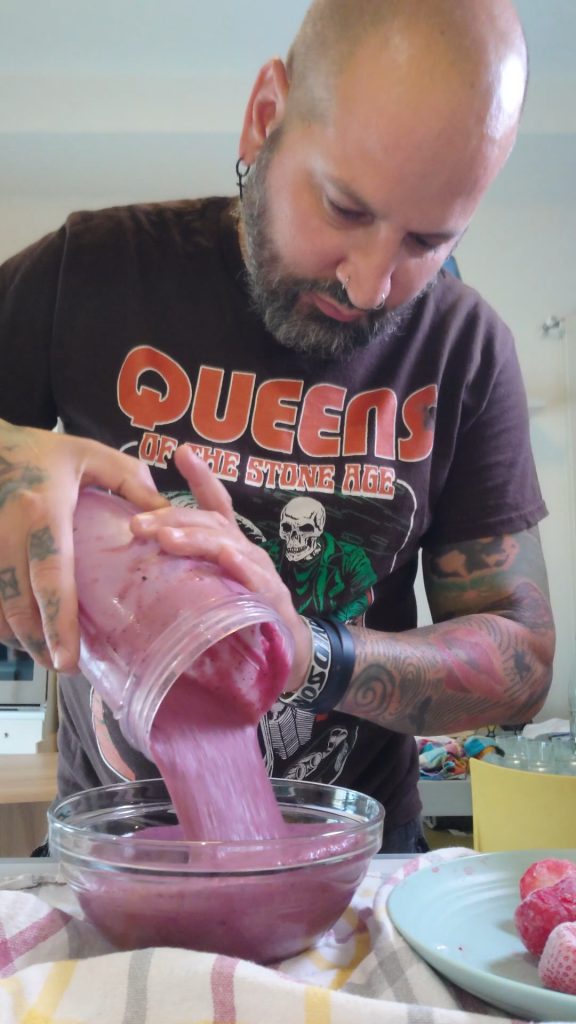 Esta fase é crucial para obter a consistência perfeita do sorvete de fruta.
