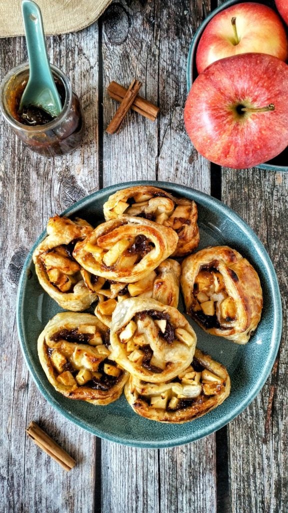 Não há nada mais reconfortante do que os enroladinhos de massa folhada com maçãs e figos acabados de sair do forno: o cheiro da massa folhada dourada que se espalha pela cozinha, a doçura da maçã que se mistura com a geleia de figos e aquele toque de canela que traz o outono imediatamente. Impossível resistir!