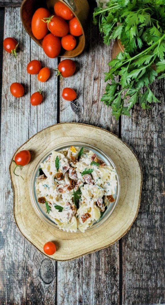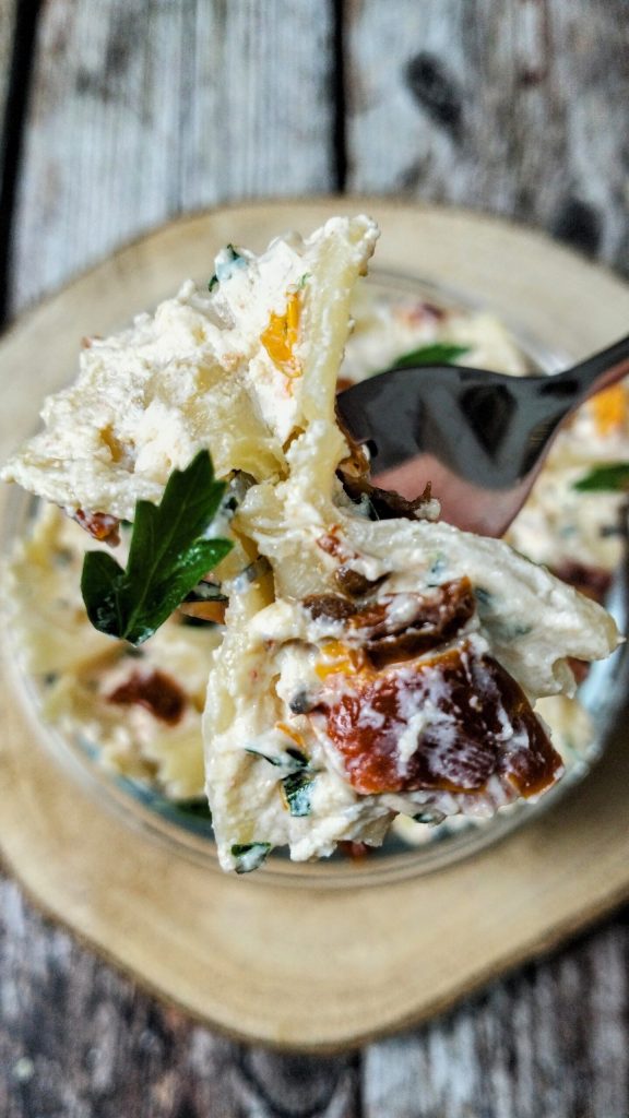Eu prefiro os formatos curtos como farfalle, fusilli ou penne, que retêm bem o creme de ricotta e os pedaços de tomate seco. Mas você pode usar o que tiver na despensa!