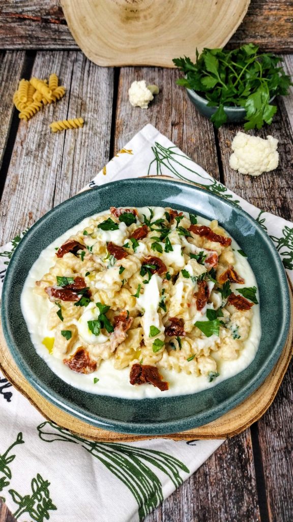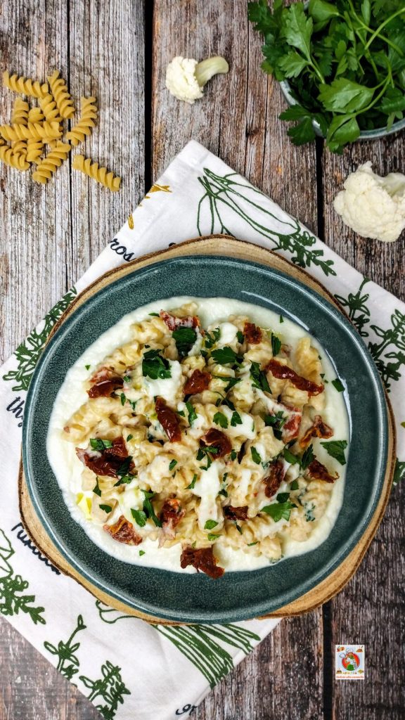 A pasta com creme de couve-flor e tomates secos é um daqueles pratos que surpreendem à primeira prova: poucos ingredientes, uma preparação muito simples e um resultado que conquista pela cremosidade e sabor.