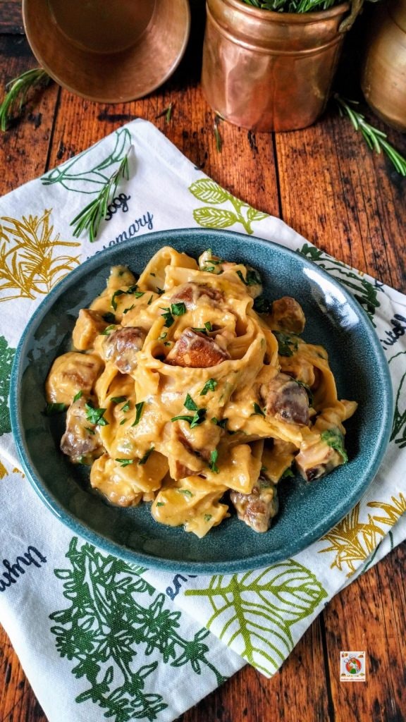 As pappardelle são perfeitas porque seguram bem o creme, mas você também pode usar tagliatelle, fettuccine ou massas curtas como rigatoni ou mezze maniche.