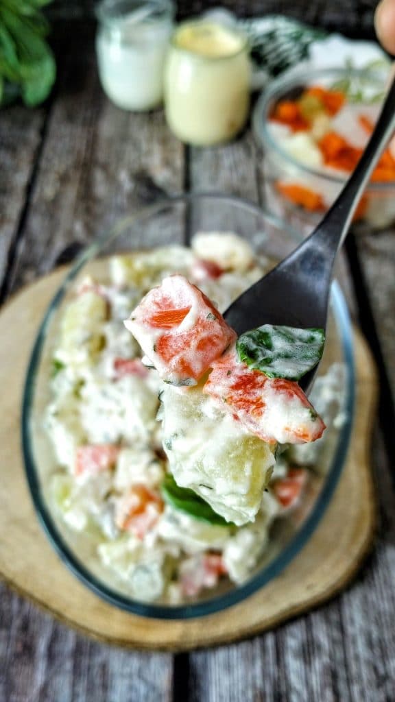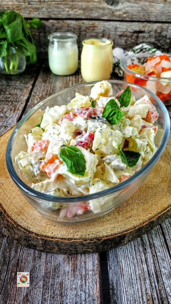 Desde então, se tornou minha salada de batata favorita: fresca, cremosa e com aquele toque ácido que limpa o paladar e convida a pegar outra colherada. Ideal para acompanhar pratos principais, mas também para saborear sozinha, quem sabe com uma fatia de pão crocante.