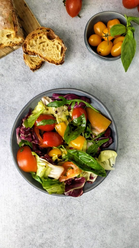 Tempo de dias ensolarados de verão, tempo para pratos frescos e saborosos como a salada mista com tomates.
