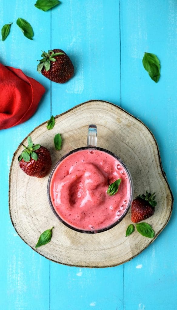 -Você pode servir o sorvete de morango com a decoração de algumas folhas de hortelã, uma fatia de limão ou alguns morangos inteiros ou cortados ao meio.