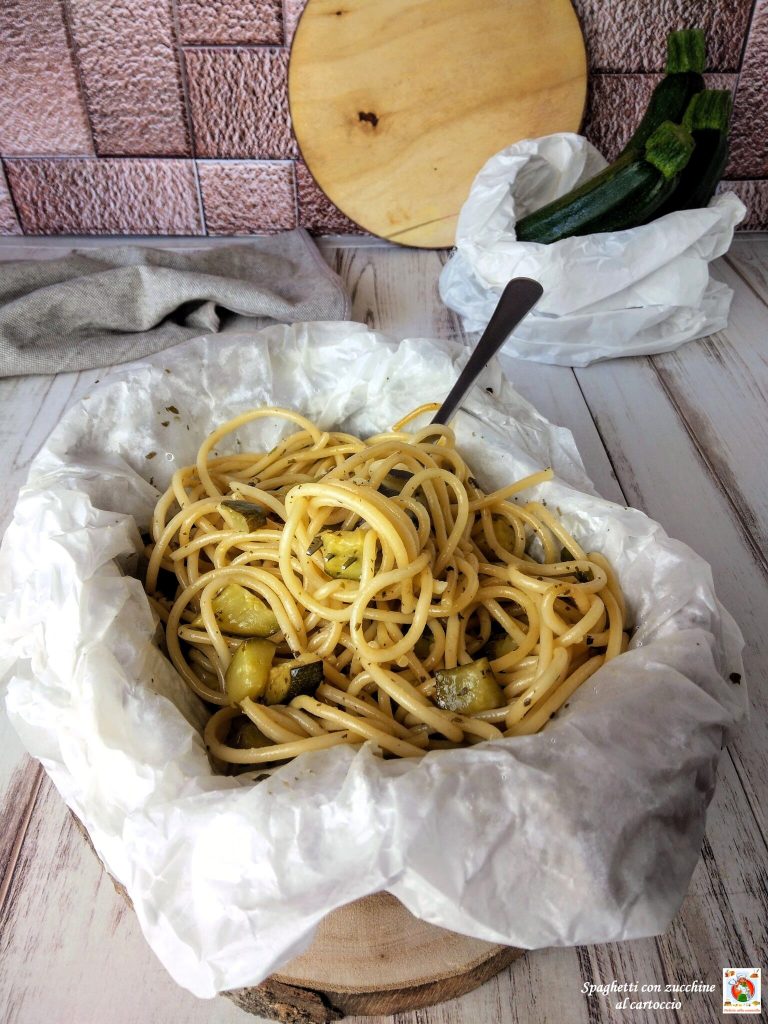 Os spaghetti com abobrinha no papelote são melhores quando recém-saídos do forno, quando os aromas são intensos e a textura é perfeita. Se sobrar, podem ser guardados na geladeira dentro de um recipiente hermético, por no máximo um dia. Quando quiser saboreá-los, aqueça-os no forno envoltos em um papelote de alumínio, para preservar a umidade.