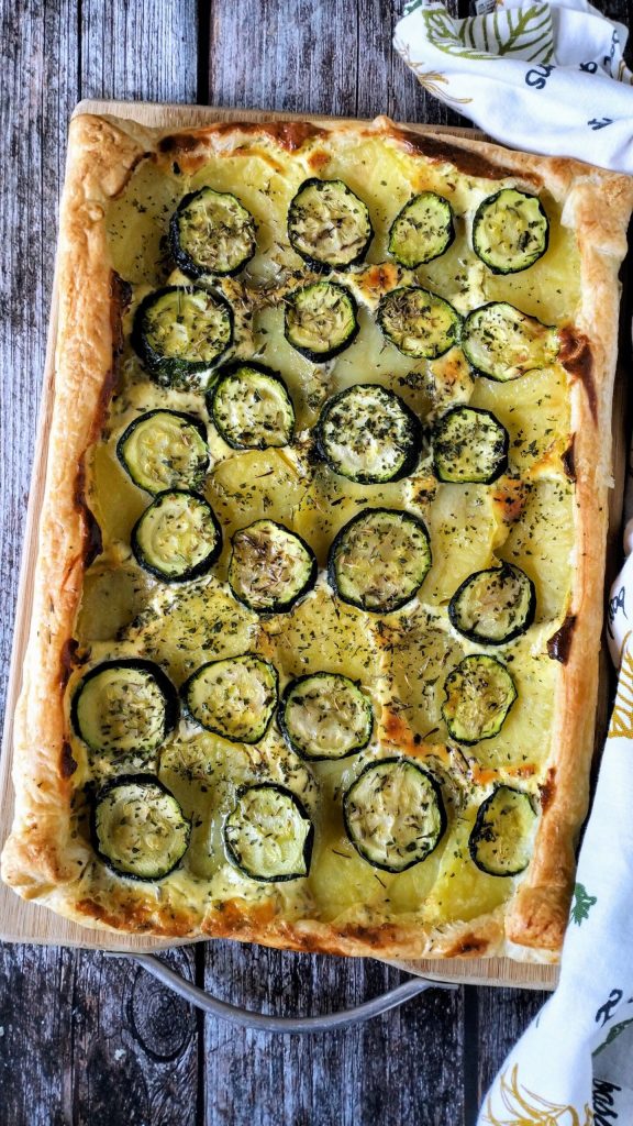 Uma receita fácil e rápida, daquelas que se preparam quase de olhos fechados, mas que sempre impressionam. O segredo? Uma base crocante e dourada, um recheio cremoso de queijo cremoso, perfumado com tomilho e salsa fresca, e muitas rodelas finas de abobrinha e batatas. Uma mistura simples, mas vencedora, que conquista na primeira mordida.