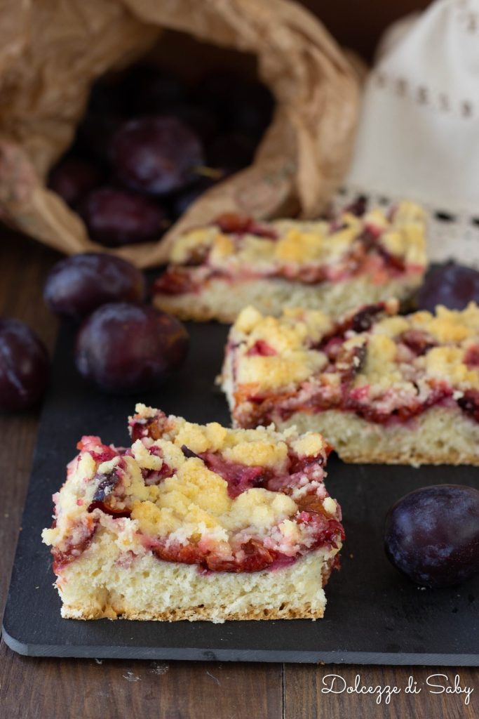 A cuca de ameixas é uma sobremesa típica alemã que se prepara em grandes formas de forno com uma massa levedada e muitas boas ameixas cobertas com uma crocante farofa. Admito que não gosto muito de ameixas e não as como de bom grado, exceto nesta versão. Esta cuca de ameixas é, de fato, uma sobremesa perfeita para preparar quando se tem muitos convidados, porque com uma massa você obterá 24 pedaços. Além disso, não é muito doce e é perfeita para ser consumida até mesmo sem pratinhos, porque se você pensa em organizar talvez um piquenique ao ar livre, pode preparar este doce, cortá-lo em cubos e servi-lo assim. Mas agora vamos ver como se prepara na receita que segue.