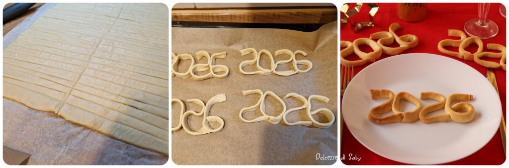 Como mencionado, para estes grissini de pão 2026, você precisará de apenas um ingrediente, que é a base para pizza. Comece estendendo a massa para pizza, corte a massa ao meio do lado da largura. Agora, corte várias tiras de 1 cm do lado do comprimento. Neste ponto, de cada tira, extraia um número, ou seja, o número 2, depois o 0, novamente o 2 e, finalmente, o 6. Coloque-os em um papel manteiga, um ao lado do outro, de forma a formar o 2026. Faça uma leve pressão entre os números para que fiquem grudados e repita para todas as tiras que você obteve.