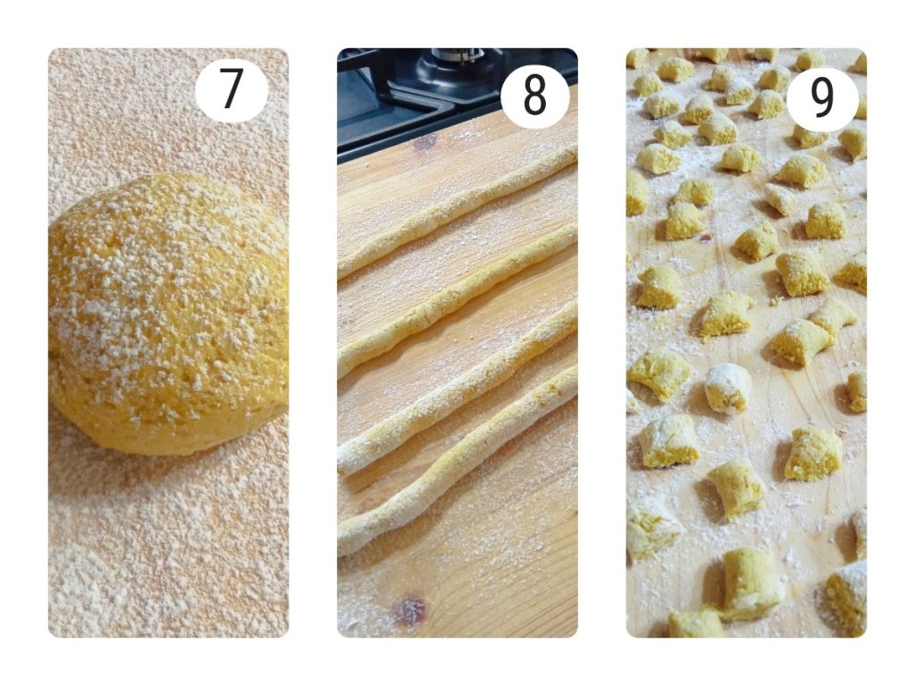 9. Corte os cordões em pequenos cilindros (como se faz com os gnocchi)