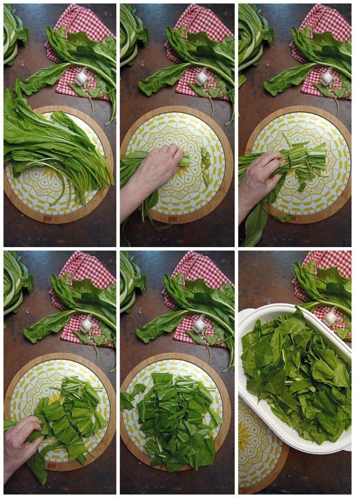 Depois, corte pedaços de cerca de 5 cm a partir da parte do talo comestível até as folhas.