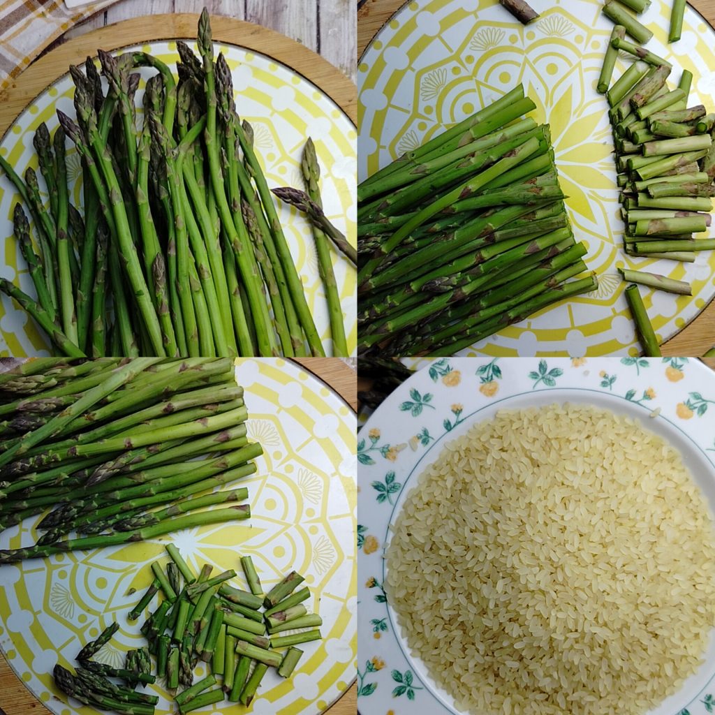 Para fazer o Arroz de forno sem lactose com aspargos, você pode preparar o molho bechamel sem lactose caseiro e deixá-lo esfriar. Na minha receita, clique no link em negrito. Enquanto isso, limpe os aspargos retirando a parte mais dura do talo e corte-os em pedaços, lavando-os em água corrente fria. Cozinhe o arroz em bastante água salgada. Escorra-o al dente e deixe-o amornar.