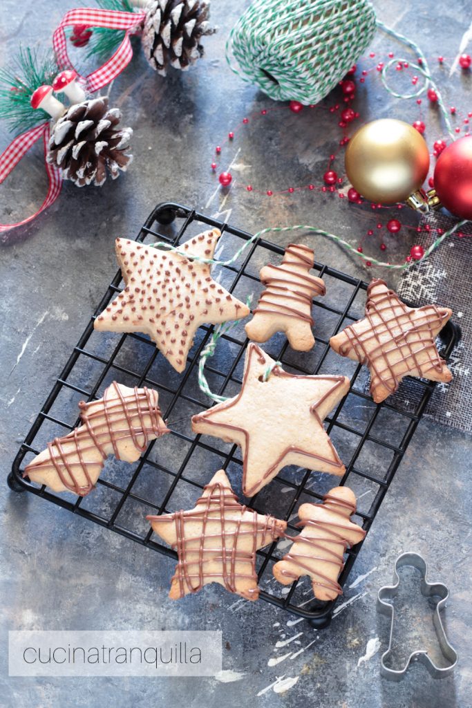 Biscoitos decorados de Natal com massa de canela, simples e deliciosos biscoitos natalinos, perfeitos também como ideia de presente, decorados com chocolate ao leite e ideais também para pendurar com um truque fácil que vou revelar na receita, para fazer assim que tirar os biscoitos do forno.