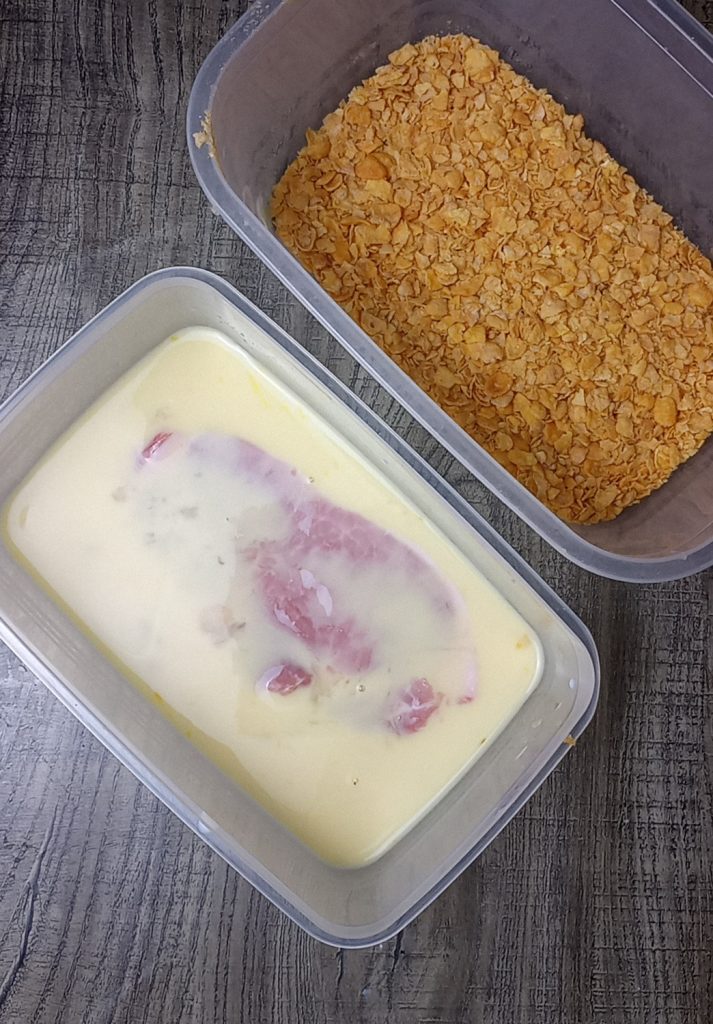 Bisteca de lombo com corn flakes, uma receita deliciosa que foi inspirada pela minha filha que há muito tempo me pedia para fazer umas bistecas diferentes.