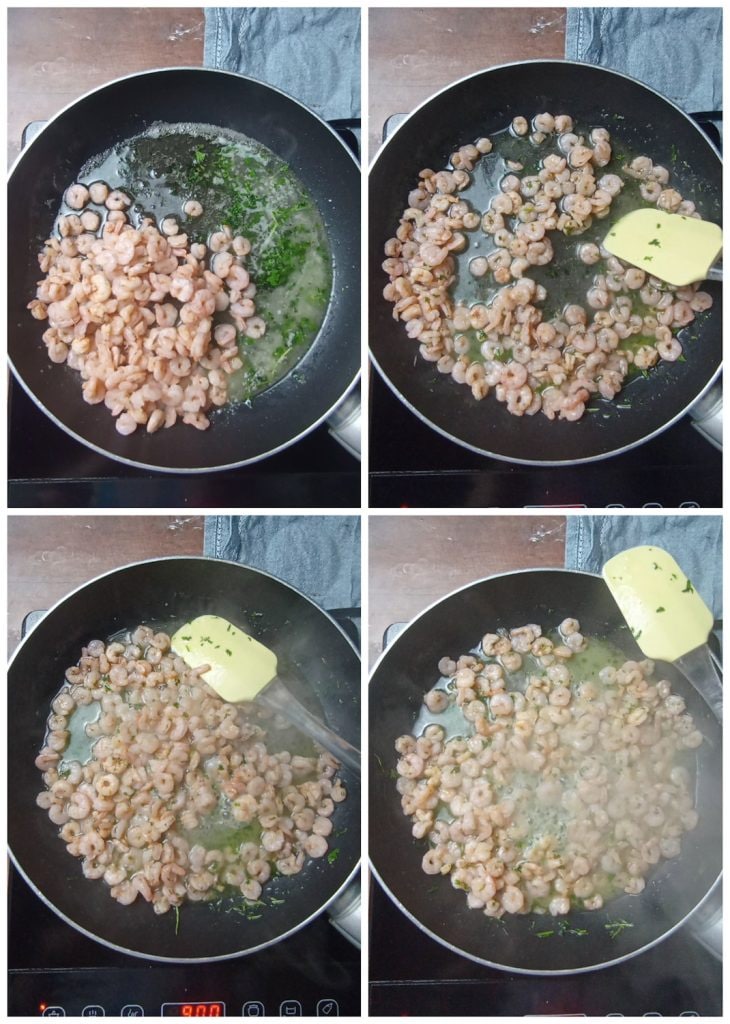 Coloque os camarões no molho e cozinhe por 2-3 minutos.